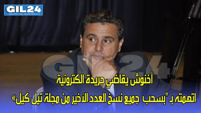 رفع رئيس حزب التجمع الوطني للأحرار، عزيز أخنوش، دعوى قضائية ضد المجلة الالكترونية “Maghreb confidentiel”، بعد نشرها لمقال، تتهمه بسحبه الكامل، للعدد الأخير من مجلة تيل كيل.