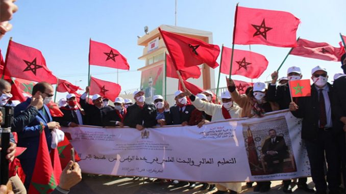 قام وفد يرأسه السيد سعيد أمزازي، وزير التربية الوطنية والتكوين المهني والتعليم العالي والبحث العلمي، الناطق الرسمي باسم الحكومة والسيد ادريس اعويشة، الوزير المنتدب المكلف بالتعليم العالي والبحث العلمي ويضم الكتاب العامين للقطاعات التعليمية الثلاثة: التربية الوطنية، التكوين المهني، التعليم العالي والبحث العلمي ومديرة مكتب التكوين المهني وإنعاش الشغل والمدراء المركزيين ورؤساء الجامعات ومدراء الأكاديميات الجهوية للتربية والتكوين، يومه السبت 19 دجنبر 2020، بزيارة إلى المعبر الحدودي الكركرات بالصحراء المغربية، وذلك للتعبير عن تثمينهم للتدخل الحازم والباسل للقوات المسلحة الملكية تنفيذا لتعليمات صاحب الجلالة الملك محمد السادس نصره الله، القائد الأعلى ورئيس أركان الحرب العامة للقوات المسلحة الملكية، والتي مكنت من تأمين المعبر وعودة حركة التنقل المدني والتجاري بين المغرب وموريتانيا.