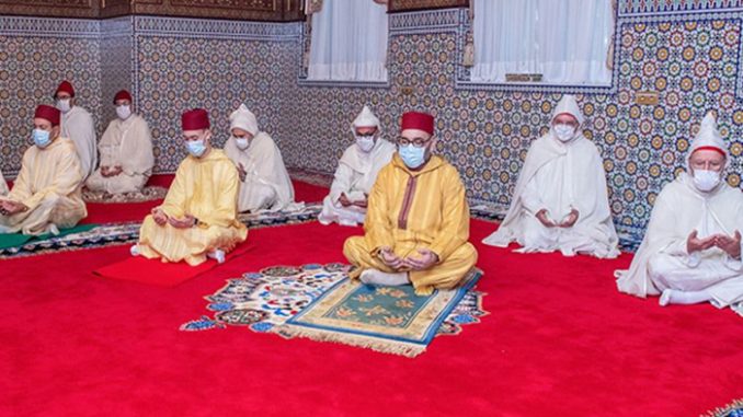 أدى مولانا أمير المؤمنين الملك محمد السادس، مرفوقا بولي العهد الأمير مولاي الحسن، و الأمير مولاي رشيد، الأحد فاتح شوال 1441 هـ، الموافق 24 ماي 2020، صلاة عيد الفطر.