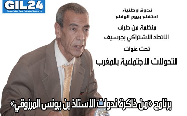 مداخلة الأستاذ بن يونس المرزوقي حول “الثقافة والمجتمع المدني في الدول العربية” التي ألقاها خلال الندوة الوطنية التي نظمها فرع الحزب الاتحاد الاشتراكي للقوات الشعبية بجرسيف تحت عنوان “التحولات الاجتماعية بالمغرب”