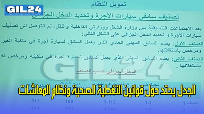 صادق المجلس الحكومي مؤخرا على المراسيم التطبيقية للقانونين 98-15 و99-15 الخاصين بالتغطية الصحية ونظام المعاشات لفائدة المواطنين الذين يزاولون نشاطا مستقلا والغير اجراء وشملت هذه المراسيم في البداية العدول والقابلات والمروضين الطبيين على أن تشمل في وقت لاحق باقي الشرائح وضمنهم مهنيوا سيارات الاجرة الذين عبروا عن استنكارهم لطريقة تحديد المبلغ الجزافي ولاجباريته رغم انه يتجاوز دخل السائق المهني ويسطو عليه.