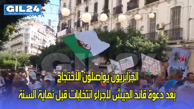 وردد المتظاهرون في العاصمة ومدن أخرى الشعارات الاعتيادية المطالبة بالتغيير الجذري وتسليم السلطة للشعب وإطلاق سراح “المعتقلين السياسيين”، كما رفعوا لافتات رافضة للانتخابات التي اقترح قايد صالح إجراءها في أقرب الآجال.