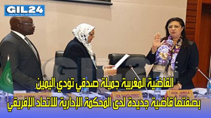 أدت القاضية المغربية جميلة صدقي، الأربعاء، اليمين أمام مفوضية الاتحاد الإفريقي في أديس أبابا، بصفتها قاضية جديدة لدى المحكمة الإدارية للاتحاد الإفريقي.