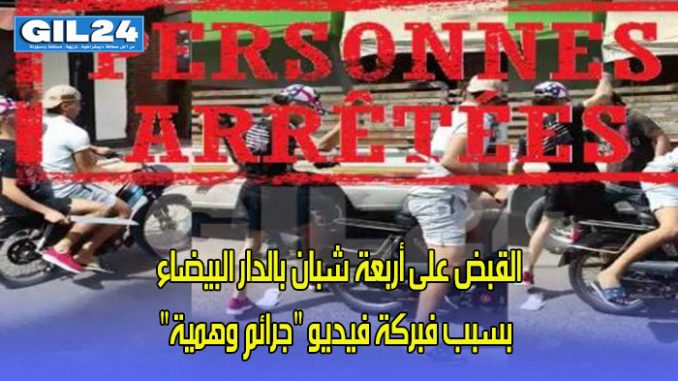تمكنت فرقة الشرطة القضائية بمنطقة أمن مولاي رشيد بالدار البيضاء، الخميس 3 أكتوبر الجاري، من توقيف أربعة أشخاص تتراوح أعمارهم ما بين 18 و29 سنة، وذلك للاشتباه في تورطهم في قضية تتعلق بتصوير شريط فيديو مفبرك يتضمن جرائم وهمية من شأنها المساس بأمن وسلامة المواطنين.