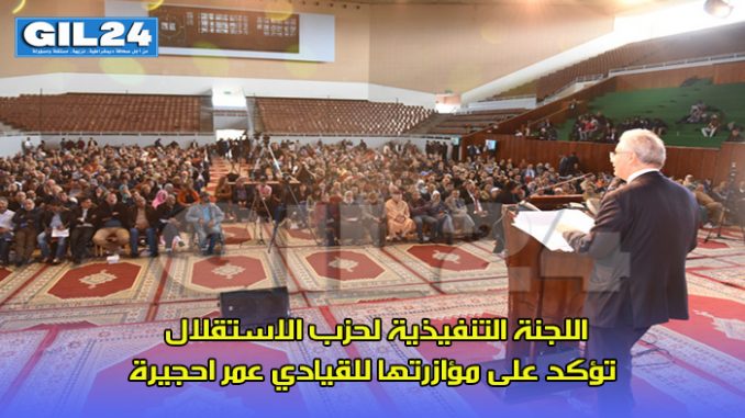 أكدت اللجنة التنفيذية لحزب الاستقلال خلال اجتماعها الأسبوعي الذي عقدته يوم الثلاثاء 26 مارس 2019 على مؤازرتها للقيادي بالحزب عمر احجيرة ، وذلك بعد الحكم عليه بالسجن بالغرفة الابتدائية المكلفة بجرائم الأموال بمحكمة الاستئناف بفاس، كما عبرت عن دعمها له في ممارسة حقه في الطعن بالنقض وفقا لما ينص عليه القانون.