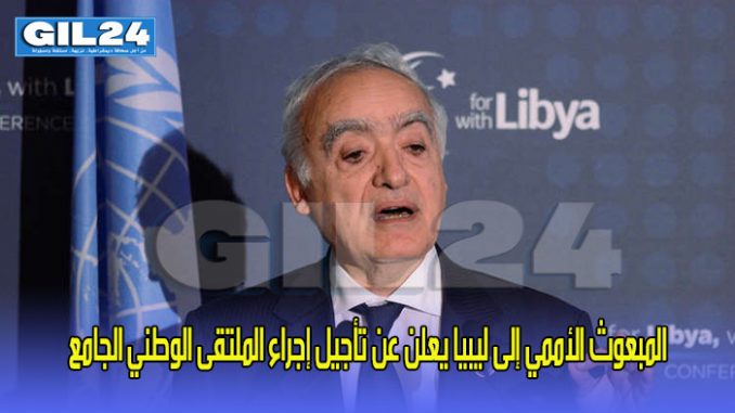 أعلن المبعوث الأممي الخاص إلى ليبيا، غسان سلامة، عن تأجيل موعد إجراء الملتقى الوطني الجامع لتسوية النزاع في ليبيا إلى حين توفر ظروف أكثر ملاءمة.