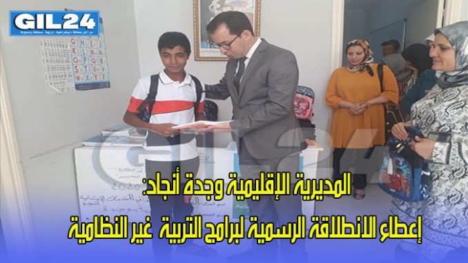 تنفيذا لمقرر وزير التربية الوطنية والتكوين المهني والتعليم العالي والبحث العلمي عدد 039-19 الصادر بتاريخ 29 مايو 2019بشان تنظيم السنة الدراسية 2019/2020، وبناء على مقتضيات المذكرة الوزارية عدد 19/0643 بتاريخ 13أكتوبر2019 في شان الانطلاقة الرسمية لبرامج التربية غير النظامية للموسم التربوي 2019/2020 ، أعطى السيد عادل زروالي عامري المدير الإقليمي لمديرية وجدة انجاد صباح يوم الإثنين 07 أكتوبر 2019الانطلاقة الرسمية لبرامج التربية غير النظامية للموسم التربوي 2019-2020 بالمركز السوسيو ثقافي للخدمات الاجتماعية النجد بوجدة ، بمعية السيد رئيس مصلحة الشؤون التربوية ،والسيدة رئيسة مكتب التعليم الأولي والارتقاء بالتربية غير النظامية بالمديرية الإقليمية ؛وبحضور السيدة رئيسة الجمعية الشريكة وأعضاء المكتب المسير للجمعية ،وممثل السلطة وبعض آباء وأمهات وأولياء المستفيدات والمستفيدين من برامج التربية غير النظامية .