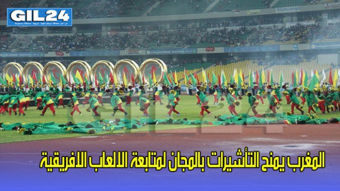 ذكرت مصادر اعلامية مقربة من وزارة الشباب والرياضة ان السلطات المغربية قررت منح تأشيرات الدخول إلى المغرب بالمجان دون أدنى عراقيل، حتى تسمح للمواطنين الأفارقة بمتابعة الدورة الـ 12 للألعاب الافريقية المرتقبة بالمغرب.