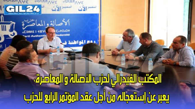 عبر المكتب الفيدرالي لحزب الأصالة و المعاصرة، عن إستعجاله من أجل عقد المؤتمر الرابع للحزب، في أقرب الآجال.