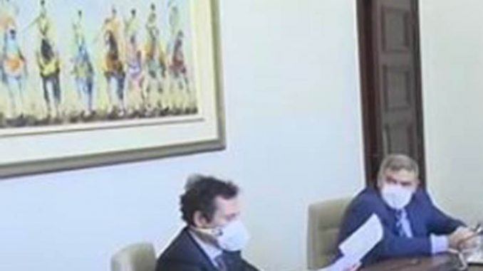 وضع الوزراء الكمامات الطبية على وجههم خلال اجتماع مجلس الحكومة، برئاسة سعد الدين العثماني، الذي لم يضع الكمامة على وجهه، الاثنين بالرباط.