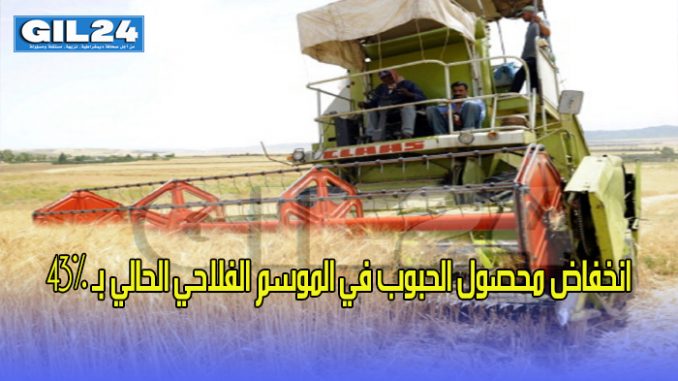 سجل متوسط محصول الحبوب في الموسم الفلاحي الحالي، نسبة انخفاض بلغت 43 في المائة مقارنة مع الموسم السابق 2017-2018، بعد تراجعه إلى 13 قنطارا في الهكتار الواحد.