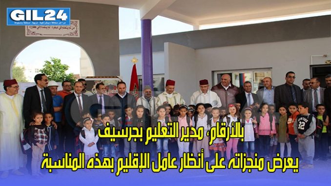 وبهذه المناسبة، قدم المدير الإقليمي لوزارة التربية الوطنية والتكوين المهني والتعليم العالي والبحث العلمي “إدريس واحي “، عدة شروحات لعامل الإقليم والوفد المرافق له، حصيلة ومستجدات إصلاح منظومة التربية والتكوين على مستوى إقليم جرسيف، مشيرا إلى أن البرامج والتدابير المزمع تنفيذها برسم هذا الإصلاح سجلت معدلات إنجاز مرضية للغاية، لاسيما تلك المرتبطة منها بالدعم المدرسي، ومكافحة الفقر والهشاشة، وتنفيذ البرنامج الوطني للتربية الدامجة، ووضع نظام خاص للتوجيه المبكر، في إطار التنزيل السليم لالتزامات الوزارة، والتي همت تطوير وتعميم التعليم الأولي، تعزيز برامج الدعم الاجتماعي، توسيع شبكة المدارس الجماعاتية، إحداث وتوسيع شبكة مدارس “الفرصة الثانية” من الجيل الجديد، إقرار نظام ناجع ونشيط للتوجيه المدرسي والمهني، وإحداث مسارات وتخصصات “رياضة ودراسة” بالسلكين الإعدادي والتأهيلي، ثم تعزيز التحكم في اللغات الأجنبية.