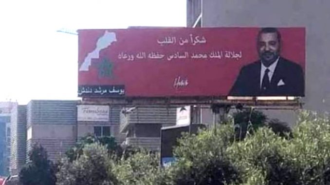 الجدارية التي تصدرتها صورة الملك محمد السادس، حملت عبارة كلها إمتنان تقول “شكرا من القلب لجلالة الملك حفظه الله ورعاه”.
