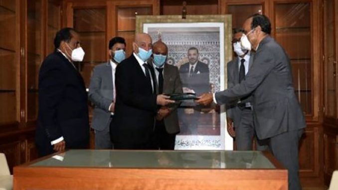 وأعرب عقيلة خلال هذا اللقاء الذي حضره سفير ليبيا المعتمد بالرباط، عن الشكر والتقدير لجهود الملك محمد السادس من أجل تسوية الأزمة الليبية، موضحا أن مجلس النواب الليبي اتخذ مبادرة جديدة لحل الأزمة الليبية “لا تتعارض مع اتفاق الصخيرات وقرارات الأمم المتحدة… تنطلق من هوية الشعب الليبي والحرص على تمثيل مختلف مكوناته في الهيئات التنفيذية والتشريعية”.