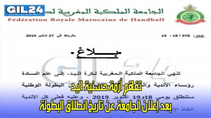 حددت الجامعة الملكية المغرية لكرة اليد يومي 18 و 19 من أكتوبر الجاري هو تاريخ انطلاق البطولة الوطنية بالقسم الممتاز، داعية رؤساء الأندية والجمعيات إلى اتخاذ الإجراءات اللازمة، حسب بلاغ توصل الموقع بنسخة منه.