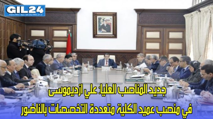 صادق مجلس الحكومة المنعقد، الخميس، برئاسة سعد الدين العثماني، رئيس الحكومة، على مقترح تعيينات في مناصب عليا، وذلك طبقا لأحكام الفصل 92 من الدستور.