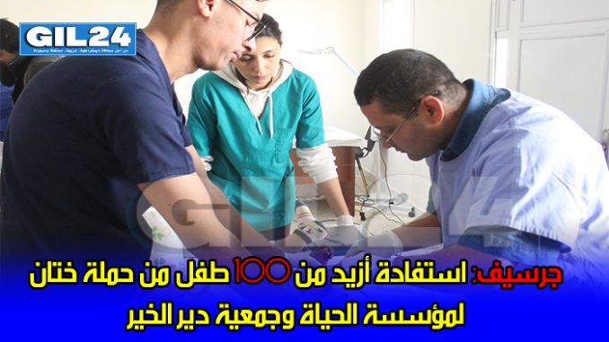 وتمت عملية الختان بمركز الإيواء والاستقبال بمدينة جرسيف، حيث أشرف عليها طاقم طبي متمرس ومجموعة من الممرضين والممرضات، هذا وأشرف على عملية توزيع الألبسة التقليدية على الأطفال والهدايا كل من عبد القادر شايب رئيس جماعة أهل أنكاد و ربيع بزغودي مستشار بالجماعة الحضرية لوجدة وأمين الصغير الذي ناب عن أخيه هشام الرئيس المؤسس لمؤسسة الحياة، كما تجند أفراد مؤسسة الحياة وجمعية دير الخير لإنجاح هذا العمل الإنساني .