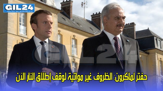 حفتر لماكرون: الظروف غير مواتية لوقف إطلاق النار الآن