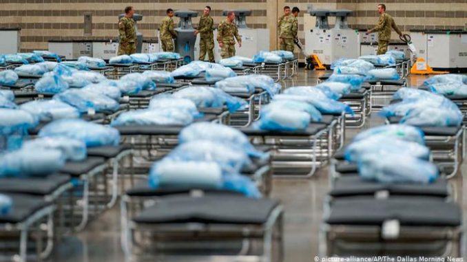 رصدت الولايات المتحدة أول إصابة بفيروس كورونا الجديد (كوفيد-19) على أراضيها في نهاية يناير الماضي. وحسب آخر إحصاء لمركز علوم وهندسة النظم بجامعة جونز هوبكنز، تجاوز عدد حالات الإصابة بالمرض 2.8 مليون ليصل إلى أكثر من 2852000، ما جعل هذا البلد على رأس دول العالم من حيث عدد الإصابات والوفيات بجائحة كوفيد-19، علما أن حالات الوفاة تجاوزت 129700.وكانت الولايات المتحدة قد سجلت يوم الخميس الماضي 57 ألف إصابة جديدة، وهو رقم قياسي عالمي جديد للحالات المسجلة في يوم واحد وقد يشهد الرقم تطورا سريعا، حيث عبر أنتوني فاوتشي، كبير خبراء الأمراض المعدية في الإدارة الأمريكية، في أواخر يونيو، عن خشيته من أن يقفز عدد الإصابات في البلاد إلى 100 ألف إصابة يوميا إذا لم “يتغير الاتجاه الحالي”.