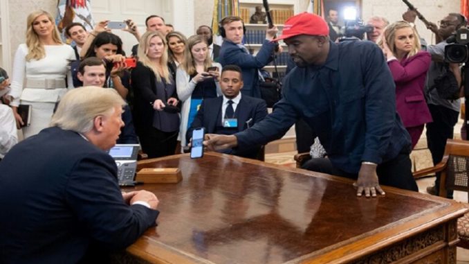 وزار وست وزوجته كارداشيان ترامب في البيت الأبيض عام 2018. وفي مقابلة في العام التالي، أوضح أن دعمه لترامب كان حيلة لإبعاد الديمقراطيين وتمهيد الطريق لخوض سباقه الخاص إلى البيت الأبيض.
