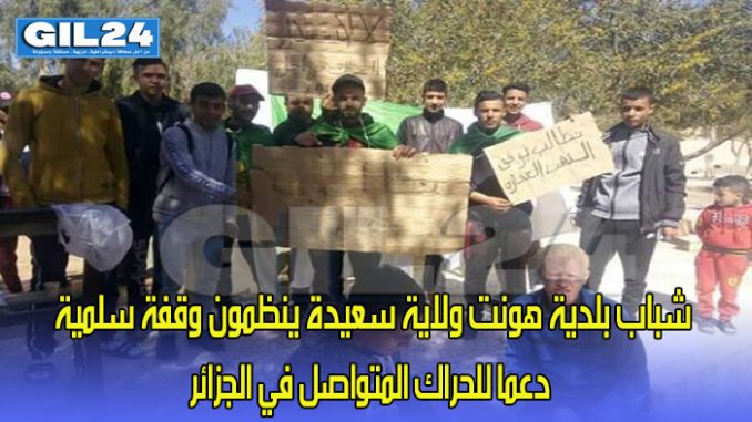 شباب بلدية هونت ولاية سعيدة ينظمون وقفة سلمية دعم للحراك المتواصل في الجزائر