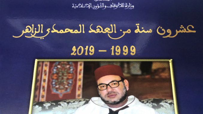 أصدرت وزارة الأوقاف والشؤون الإسلامية ، بمناسبة الذكرى العشرين لعيد العرش المجيد ، مؤلفا تحت عنوان “عشرون سنة من العهد المحمدي الزاهر ( 1999-2019) .