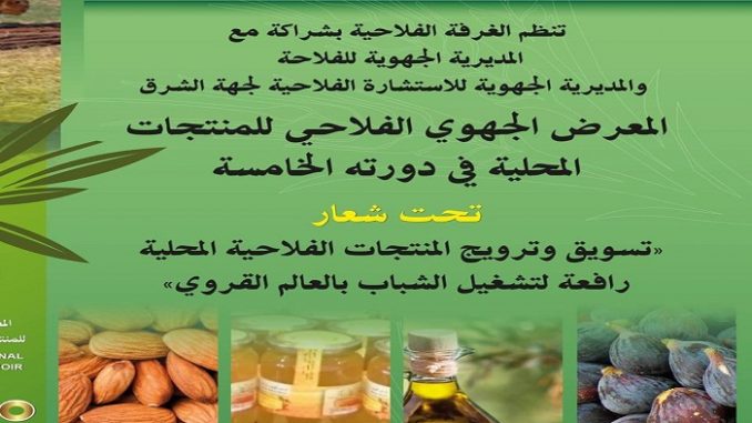 تنظم الغرفة الفلاحية لجهة الشرق بشراكة مع المديرية الجهوية للفلاحة والمديرية الجهوية للاستشارة الفلاحية لجهة الشرق، المعرض الجهوي الفلاحي للمنتجات المحلية في نسخته الخامسة تحت شعار “تسويق وترويج المنتجات الفلاحية المحلية رافعة لتشغيل الشباب بالعالم القروي” من 13 إلى 15 دجنبر 2018 بمدينة الدريوش .