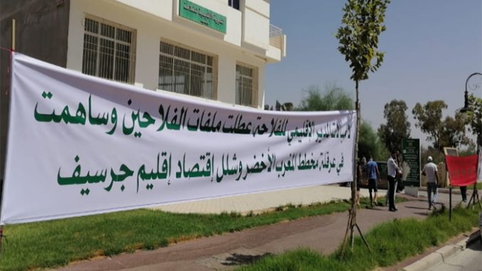 زاد هذا الوضع المتأزم والذي لا يخدم مصلحة قطاع الفلاحة والفلاح بإقليم جرسيف، من احتقان الوضع، دق معه المتضررون ناقوس الخطر ملتمسين من الجهات المسؤولة التدخل العاجل من أجل تسريع وثيرة معالجة مجموع الملفات الوافدة على مديرية الفلاحة بجرسيف، نظم بعده المتضررون من فلاحين ومقاولات فلاحية وقفة احتجاجية مع اعتصام ومبيت ليلي بتاريخ 31 غشت 2020 كشكل احتجاجي إنذاري، خلص إلى جلسة حوار حضرته السلطات المحلية وممثلين عن المقاولات الفلاحية، وعد خلالها المدير الإقليمي لوزارة الفلاحة بحل جميع المشاكل، قبل أن يخلف وعده فيما بعد. وفي ذات السياق، نظم صباح هذا اليوم 07 شتنير 2020 وقفة احتجاجية أمام مقر المديرية الإقليمية لوزارة الفلاحة حاملين صور صاحب الجلالة الملك محمد السادس والأعلام الوطنية ولافتات استنجد من خلالها المحتجون بملك البلاد من أجل استخلاص مستحقاتهم المالية العالقة منذ شهور، بسبب لامبالاة المدير الإقليمي للفلاحة التي عطلت الفلاحين وساهمت في عرقلة مخطط المغرب الأخضر وشلل اقتصادي بإقليم جرسيف.