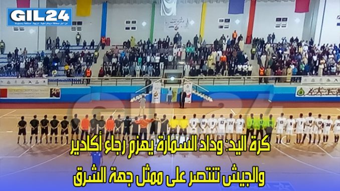 تمكن نادي وداد السمارة من انتزاع فوز محتشم أمام نظيره رجاء أكادير برسم أولى مقابلات البطولة الوطنية المصغرة المعروفة اختصارا بــ “البلاي أوف” المقامة بمدينة تيزنيت بعد أن هزمت السوسيين بنتيجة 21 مقابل 20 لصالح أبناء رئيس الجامعة الملكية المغربية لكرة اليد عدلي الحنفي.