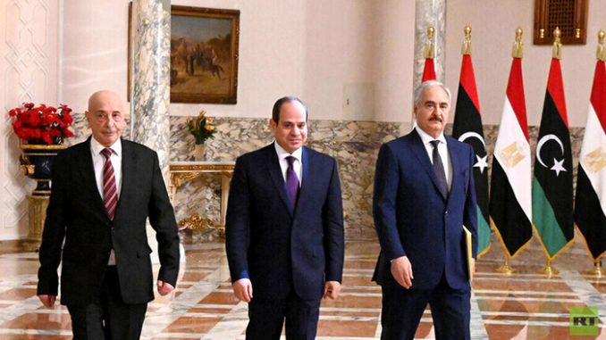 خصص اجتماع في القاهرة بين قائد الجيش الوطني الليبي خليفة حفتر ورئيس مجلس النواب (برلمان شرق ليبيا) عقيلة صالح والرئيس المصري عبد الفتاح السيسي لخطة انتقالية تتضمن التقسيم المؤقت للجماهيرية السابقة إلى ثلاثة أجزاء. وبحسب إحدى الروايات، حاول السيسي خلال المفاوضات إزالة الخلافات بين القائد العسكري ورئيس الهيئة التشريعية.