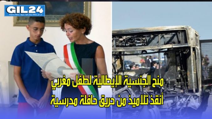 في موقف بطولي، قام طفل مغربي رفقة طفل مصري بإحباط عملية إحراق حافلة مدرسية اختطفها شاب إيطالي من أصل سنغالي يوم 20 مارس الماضي.