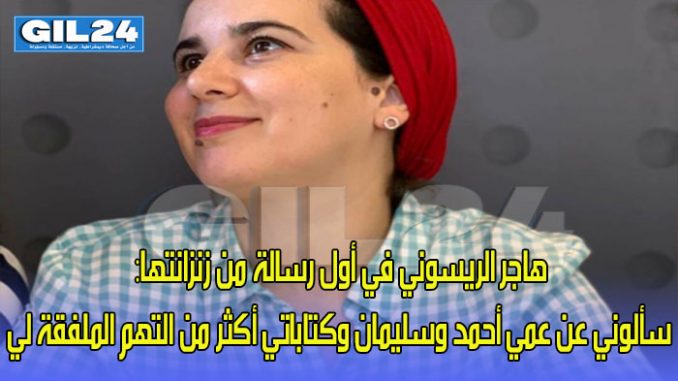 في أول رسالة لها من خلف أسوار سجن العرجات، تقدمت الزميلة الصحافية هاجر الريسوني، بالشكر لكل من ساندها من صحافيين وسياسيين وحقوقيين، قائلة: “بلغني حجم تضامنكم…شكرا لكم أنا صامدة”.