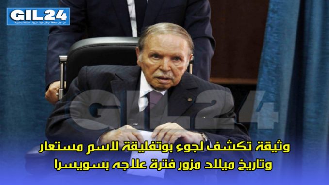 وذكرت صحيفة “لا تريبين دو جنيف” السويسرية الناطقة بالفرنسية، في مقال نشرته الأربعاء، أنها اطلعت على وثيقة المتابعة الطبية لبوتفليقة والتي أظهرت أنه تلقى العلاج تحت مسمى عيسى عبد المجيد، مشيرة إلى أن تاريخ ميلاد الرئيس الذي قُدم في الوثيقة ذاتها هو 5 يوليو/ تموز 1938، أي أقل بسنتين من تاريخ ميلاده الحقيقي.