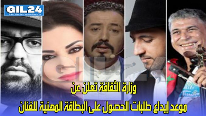 وأوضح البلاغ أن هذا الإعلان يهم طالبي بطاقة الفنان أو بطاقة تقنيي وإداريي الأعمال الفنية لأول مرة، والذين يتعين عليهم الإدلاء بطلب خطي يوجه إلى رئيس “لجنة البطاقة الفنية” المنصوص عليها في المادة 5 من المرسوم رقم 2.17.56، وملء المطبوع الخاص بطلب البطاقة الفنية، الذي يحمل من الموقع الإلكتروني للوزارة ويودع لدى المديريات الجهوية لوزارة الثقافة والاتصال –قطاع الثقافة.