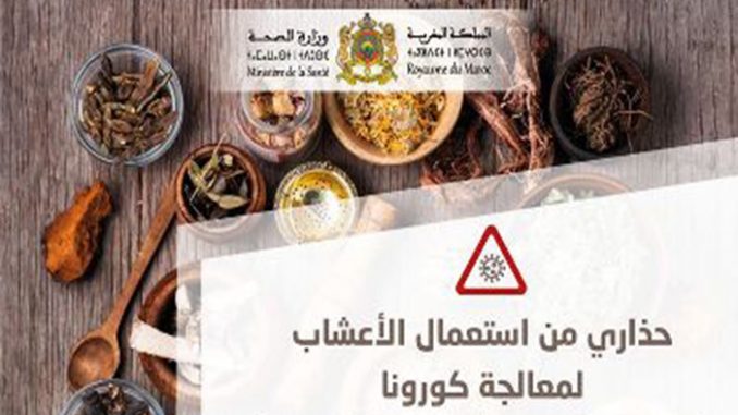 وأضافت أن المركز المغربي لمحاربة التسمم واليقظة الدوائية التابع لوزارة الصحة، حذر من استعمال الأعشاب بكثرة حتى تلك التي تستعمل في الأكل، كما حذر من الانسياق وراء النصائح والوصفات التي يتم تقديمها عبر الإنترنيت للوقاية أو لمعالجة مرض كورونا.