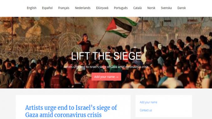 حث أكثر من 250 فنانا عبر العالم في مقالة رأي، على وضع حد للحصار الذي تفرضه إسرائيل على قطاع غزة، في ظل أزمة “كوفيد-19″، لتجنب انتشار للوباء قد يكون مدمرا.
