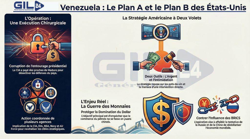 Si cette transition contrôlée échoue, l’administration Trump dispose d’un « Plan B » beaucoup plus radical : un coup d’État militaire direct. En utilisant les généraux déjà sur la liste de paye de la CIA et en les soutenant par la puissance de feu de l’armée américaine, les États-Unis pourraient renverser le gouvernement actuel pour instaurer une dictature militaire favorable à leurs intérêts, à l’instar du Chili en 1973.