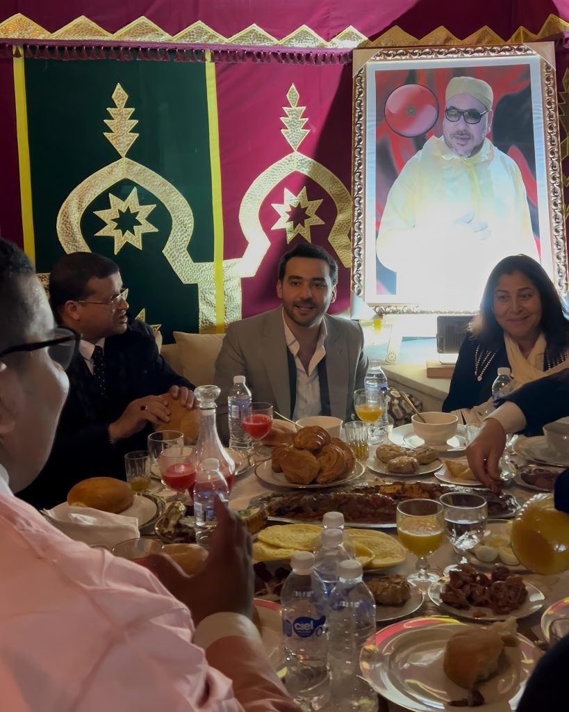 Les festivités ont débuté dès 18h00, où l’accueil des invités s’est déroulé selon les arts ancestraux de l’hospitalité marocaine. Les fragrances d’encens et la douceur de l’eau de fleur d’oranger ont enveloppé les convives dans une expérience sensorielle unique, rappelant que l’attachement aux traditions authentiques constitue le plus bel accès vers l’ouverture sur le monde.