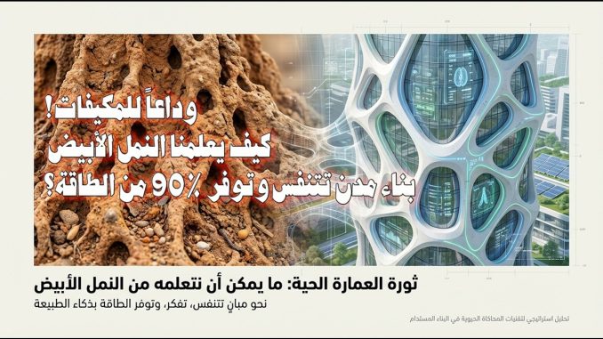 في هذا النقاش المعرفي العميق، نستكشف « عمارة تتنفس »؛ وهي رؤية ثورية لإعادة تصور المكان الذي نقضي فيه معظم حياتنا. نكشف كيف يمكن لحشرة صغيرة « عمياء » كالنمل الأبيض أن تقدم الحل الجذري لأزمة الطاقة العالمية التي يسببها قطاع البناء.